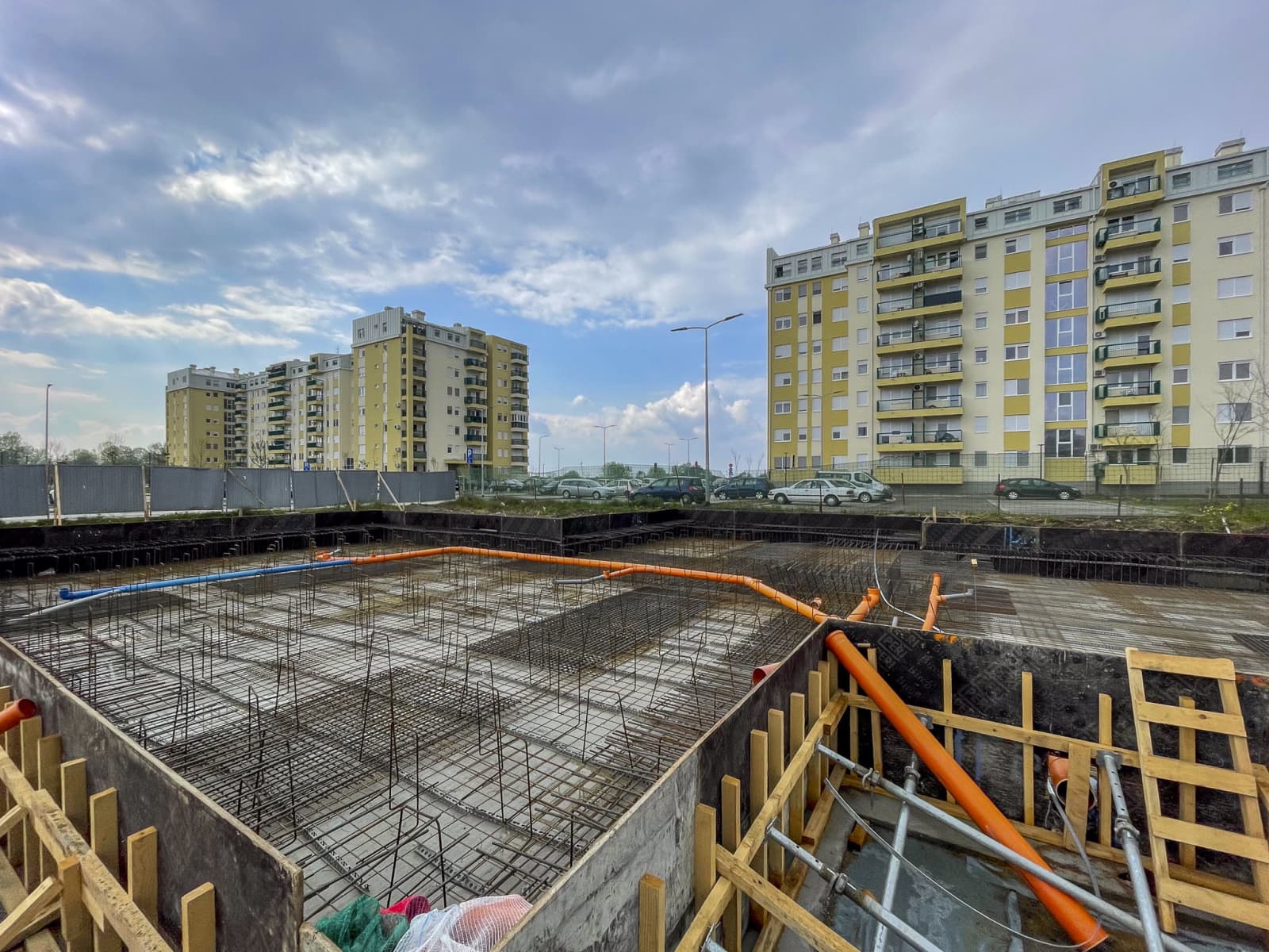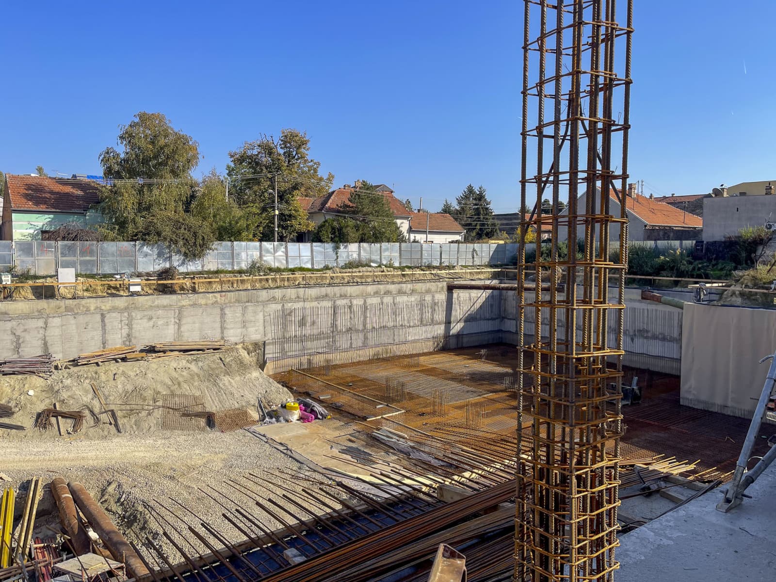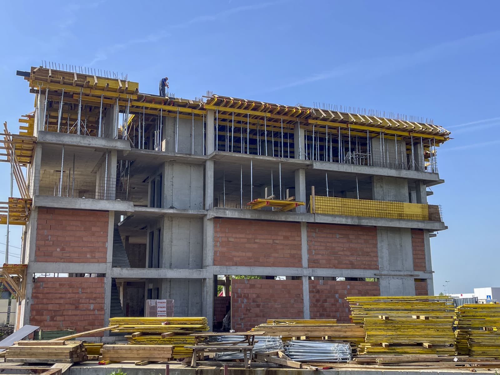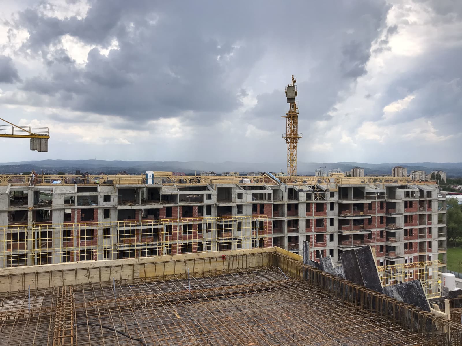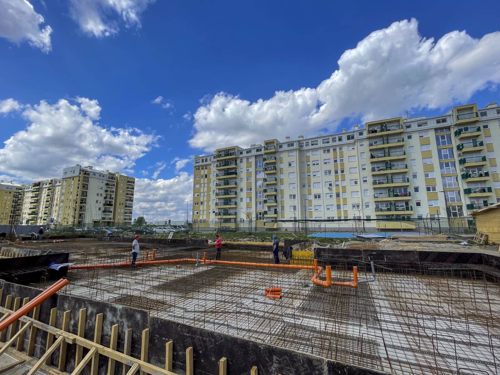 Pregled faza izgradnje objekta kroz fotografije koji prikazuju organizaciju, napredak i tok radova na terenu — od pripreme podloge do završnih radova.