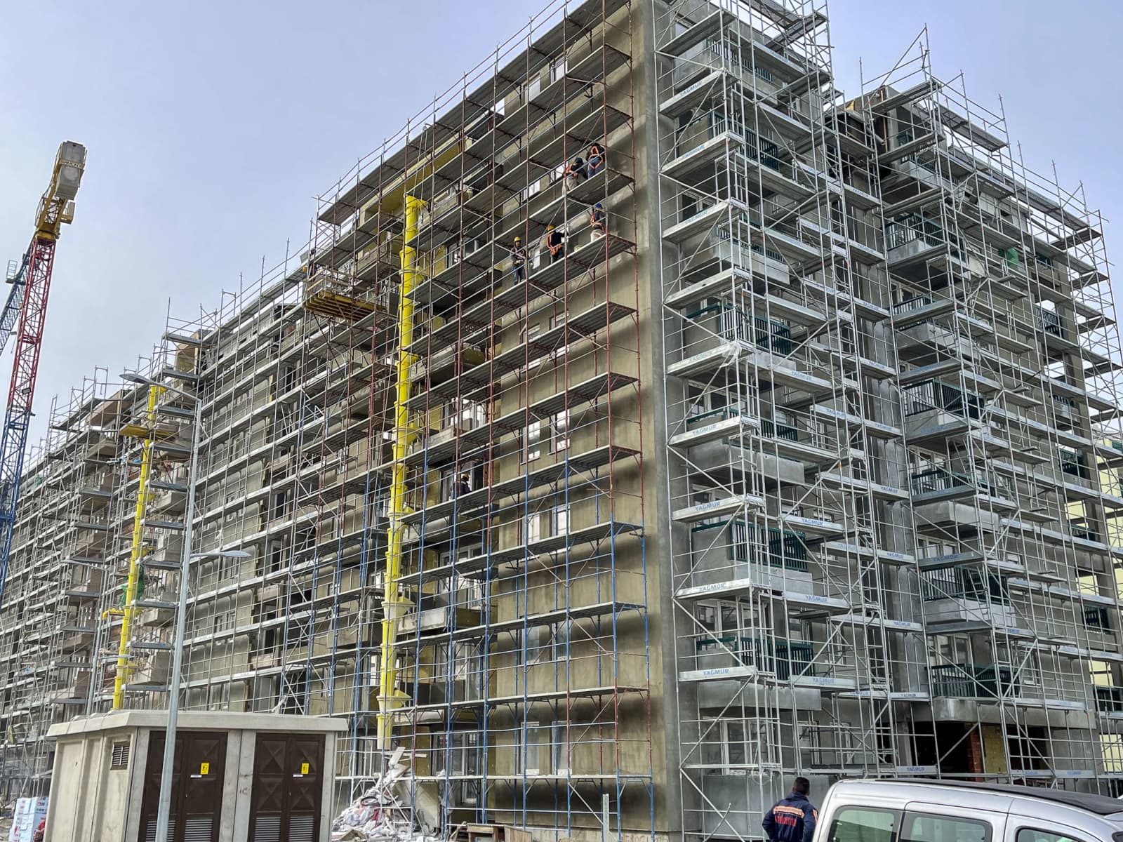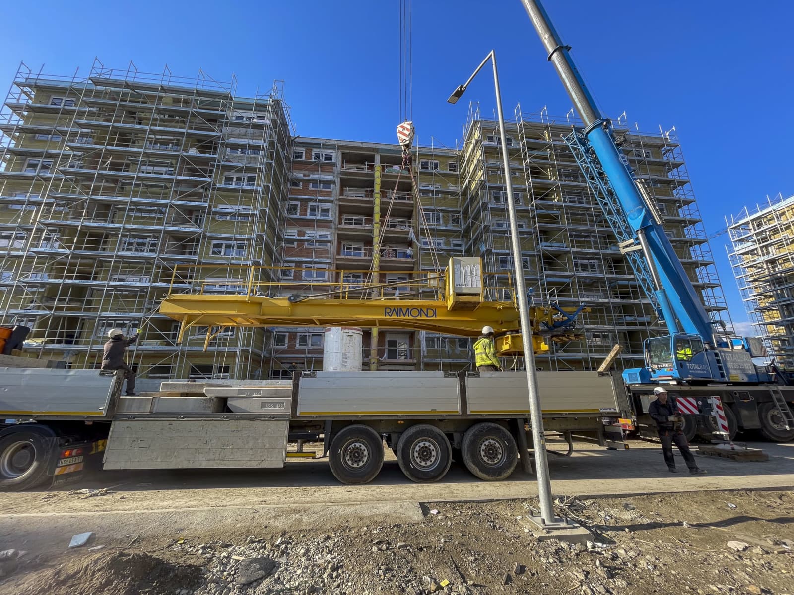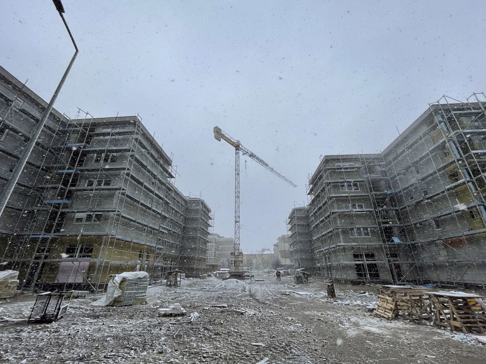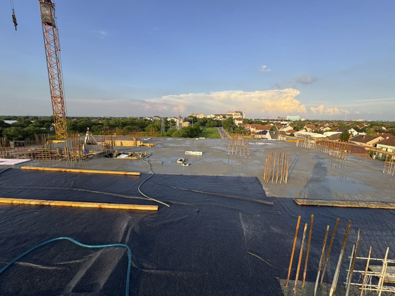 Pregled faza izgradnje objekta kroz fotografije koji prikazuju organizaciju, napredak i tok radova na terenu — od pripreme podloge do završnih radova.