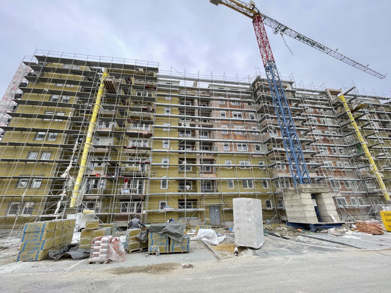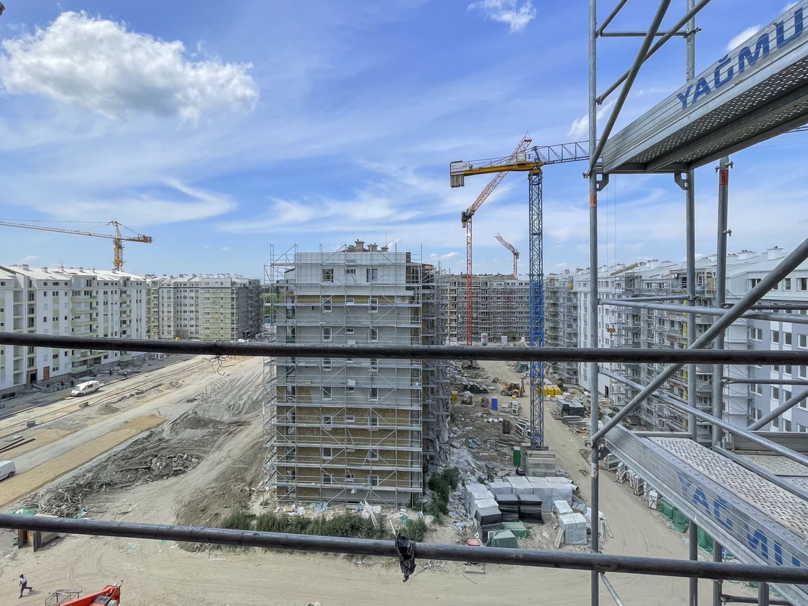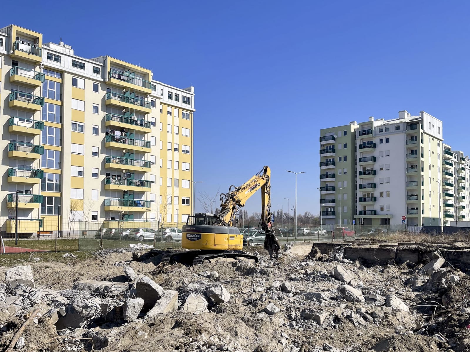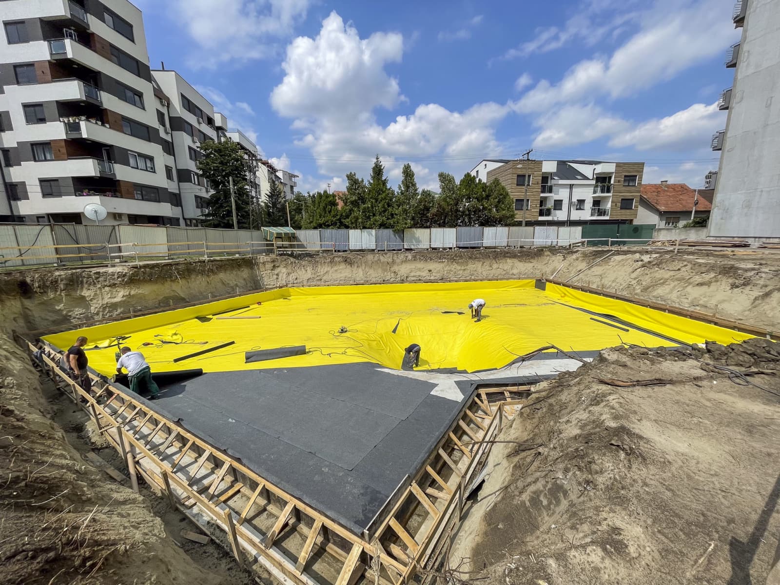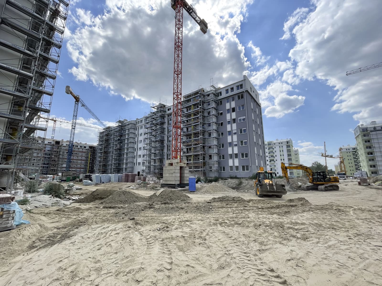Pregled faza izgradnje objekta kroz fotografije koji prikazuju organizaciju, napredak i tok radova na terenu — od pripreme podloge do završnih radova.