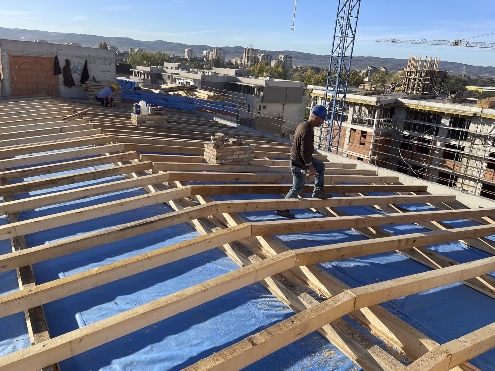 Izrada, montaža i izolacija krovnih konstrukcija uz primenu savremenih materijala. Posebna pažnja posvećuje se hidroizolaciji i zaštiti od spoljašnjih uticaja.