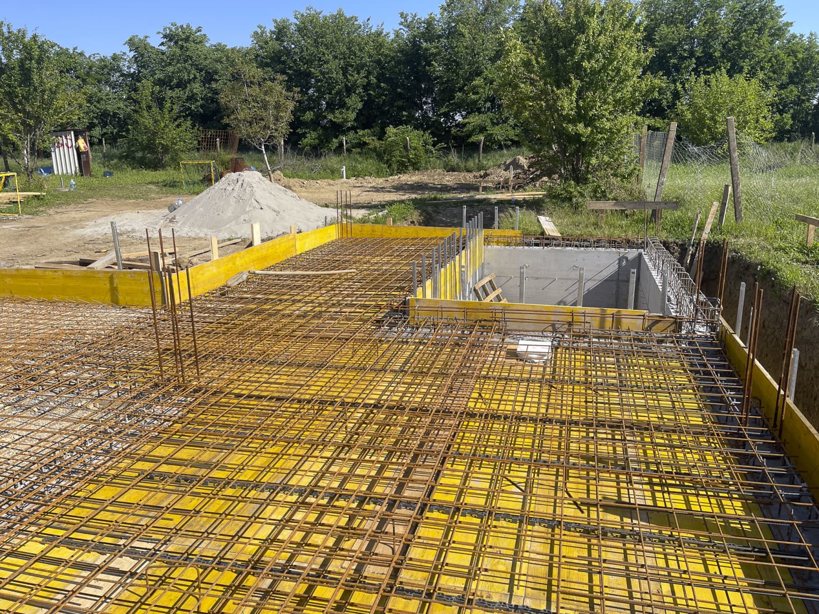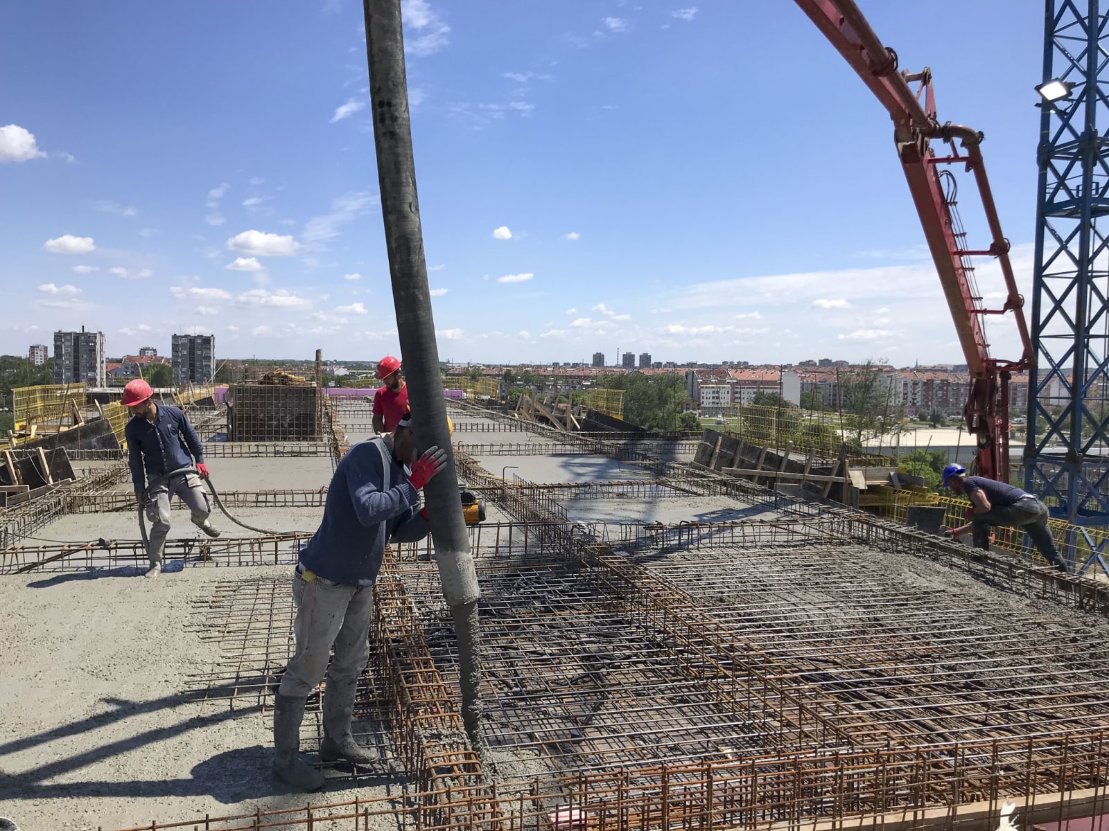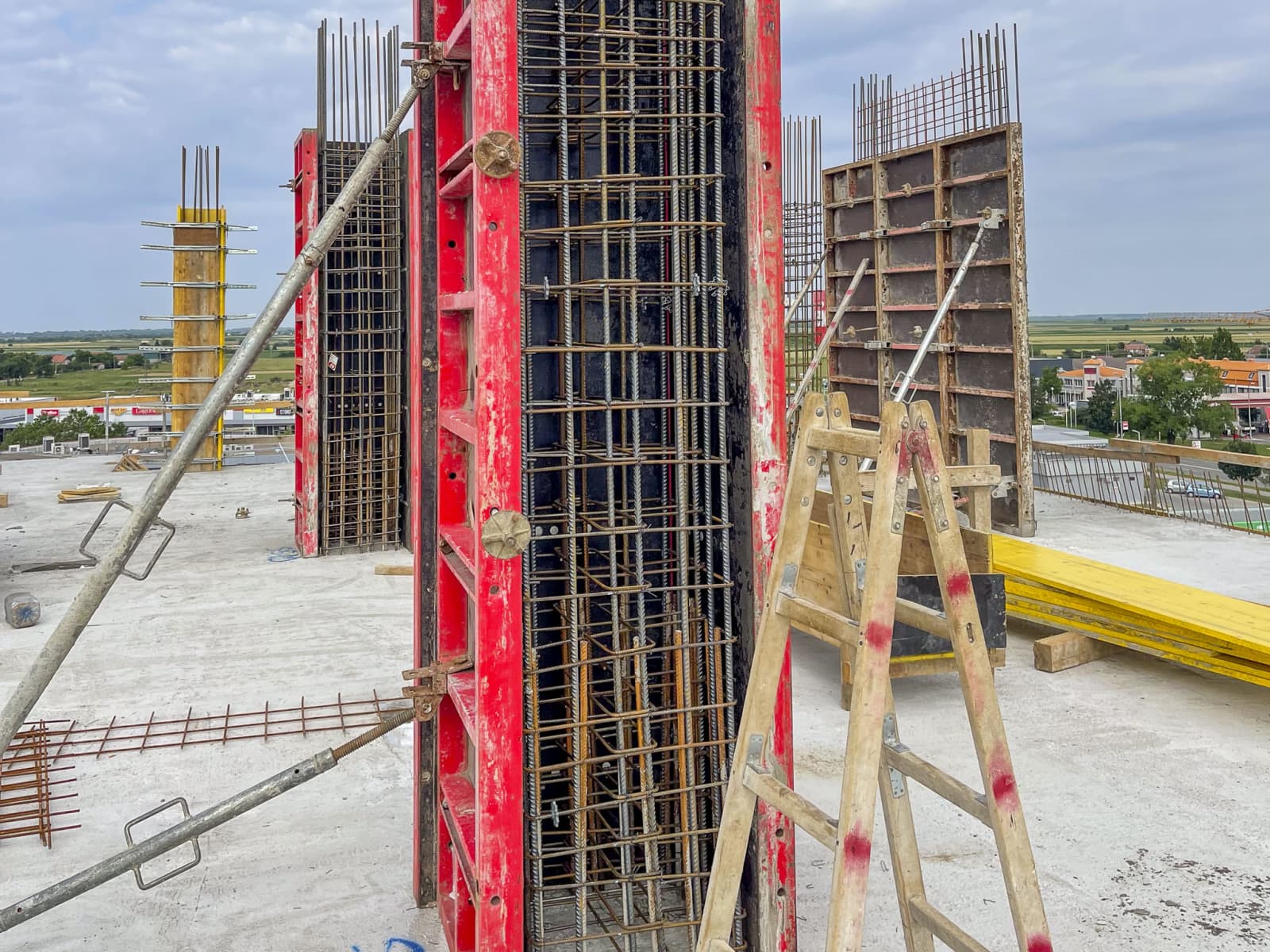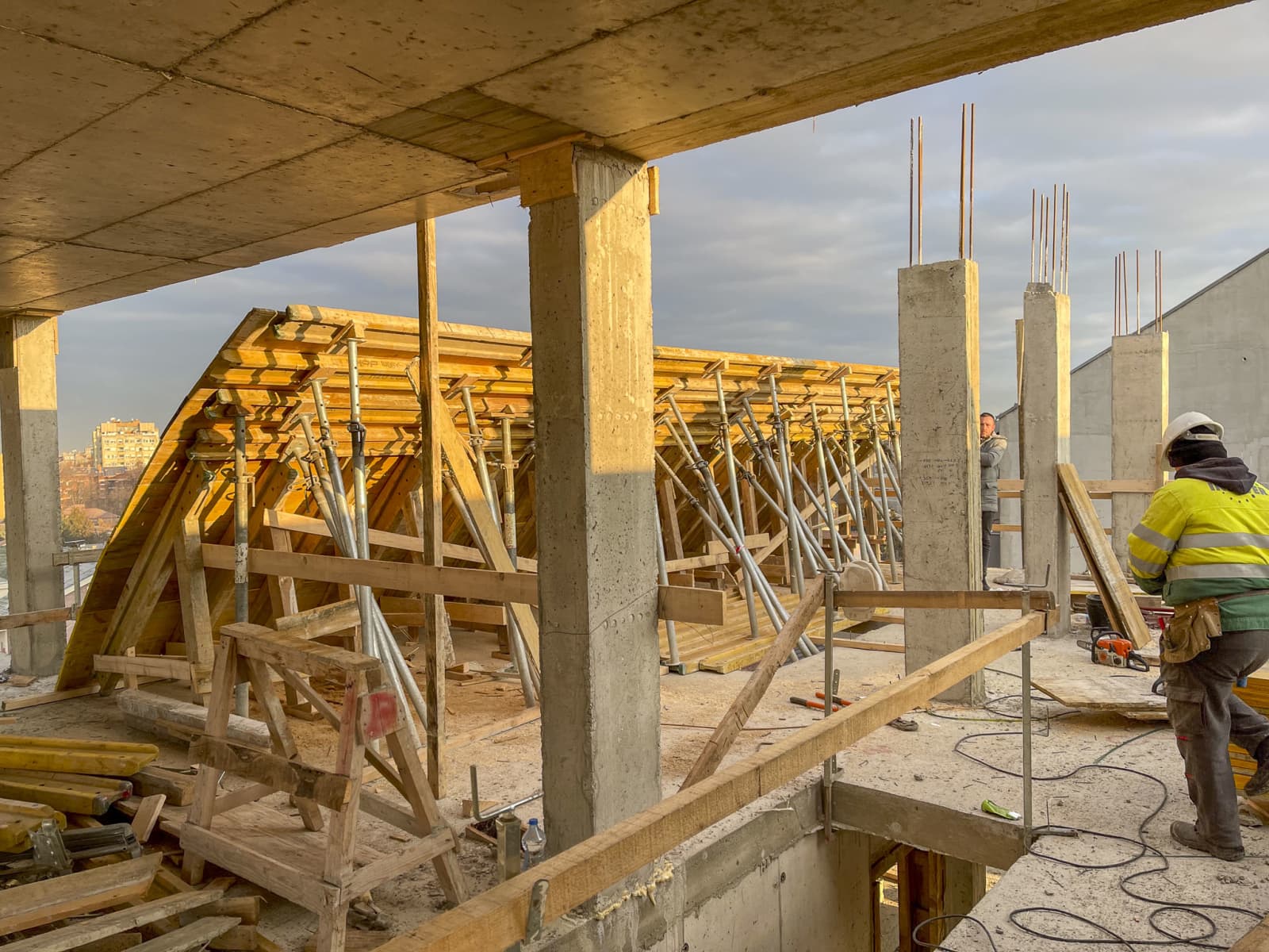 Proces izrade betonskih elemenata konstrukcije — od temelja do ploča i stubova. Korišćenje kvalitetnog betona i pravilna ugradnja garantuju dugotrajnost i nosivost objekta.